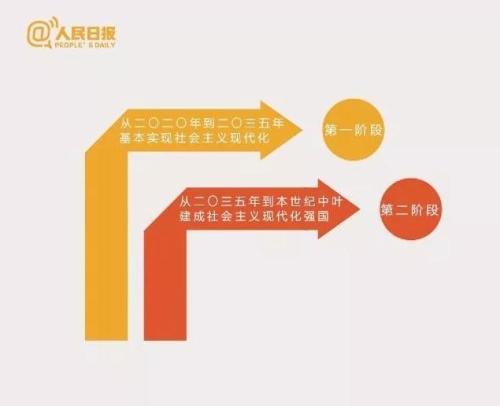 分兩步走在本世紀中葉建成富強民主文明和諧美麗的社會主義現代化強國。