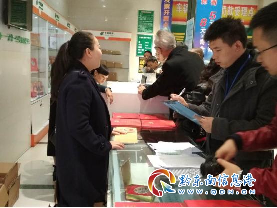 黔東南州郵政管理局執法人員在凱里市大十字郵政支局檢查現場