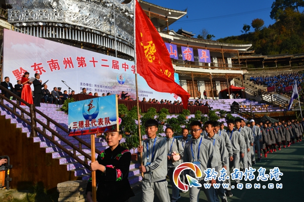 本網訊 11月27日上午,由黔東南州教育局主辦,雷山縣教育和科技局、雷山民族中學承辦,黔東南州學校體育協會協辦的黔東南州第十二屆中學生田徑運動會在雷山縣文體中心開幕。州教育局副局長朱鴻鋒、州教育局副局長謝翔云,凱里學院體育學院院長王建中,州學校體育協會副理事長申映輝、州學校體育協會副理事長朱濱,雷山縣委副書記楊冰、縣人大副主席李勝平、副縣長張曉玲、縣政協副主席侯建群,雷山縣教科局局長楊箭標等出席開幕式。開幕儀式由州教育局體衛藝辦公室主任、州學校體育協會理事長王榮甸主持。