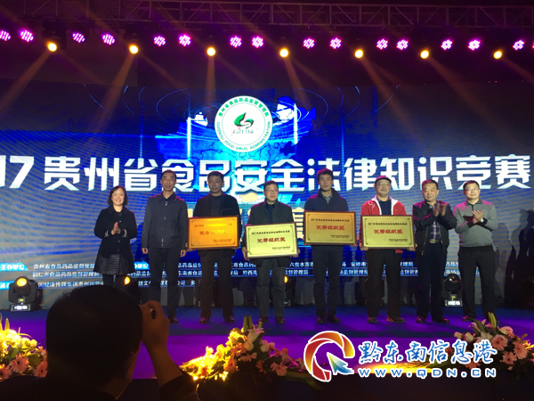 本網(wǎng)訊 12月18日,“2017貴州省食品安全法律知識(shí)競(jìng)賽·省局決賽”在貴州飯店國(guó)際會(huì)議中心舉辦。黔東南州代表隊(duì)團(tuán)結(jié)拼搏、勇于開拓,隊(duì)員們以扎實(shí)的食品安全法律知識(shí)功底和精彩的現(xiàn)場(chǎng)表現(xiàn)贏得評(píng)委和觀眾的一致好評(píng),最終為黔東南州榮獲團(tuán)隊(duì)二等獎(jiǎng)和優(yōu)秀組織獎(jiǎng)的優(yōu)異成績(jī)。