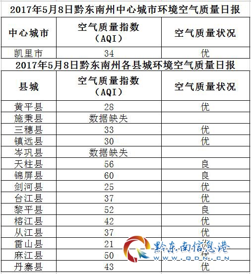 2017年5月9日黔東南州各縣(市)環(huán)境空氣質(zhì)量日報
