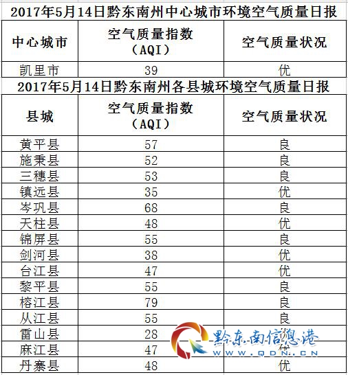 2017年5月15日黔東南州各縣(市)環(huán)境空氣質(zhì)量日報