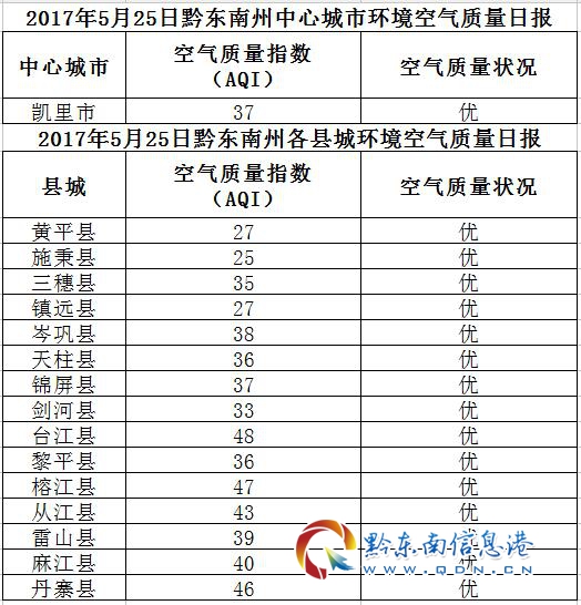2017年5月26日黔東南州各縣(市)環(huán)境空氣質(zhì)量日?qǐng)?bào)