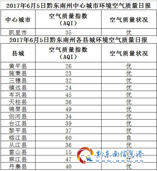 2017年6月6日黔東南州各縣(市)環(huán)境空氣質(zhì)量日?qǐng)?bào)