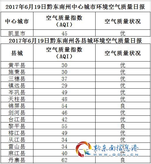 2017年6月20日黔東南州各縣(市)環境空氣質量日報