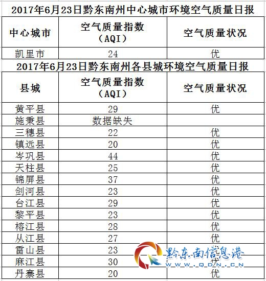 2017年6月24日黔東南州各縣(市)環(huán)境空氣質(zhì)量日?qǐng)?bào)