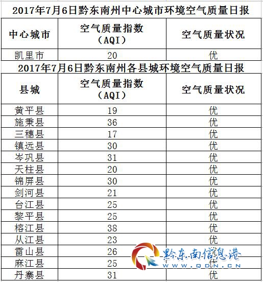 2017年7月7日黔東南州各縣(市)環(huán)境空氣質(zhì)量日報