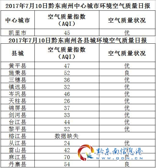 2017年7月11日黔東南州各縣(市)環(huán)境空氣質(zhì)量日?qǐng)?bào)