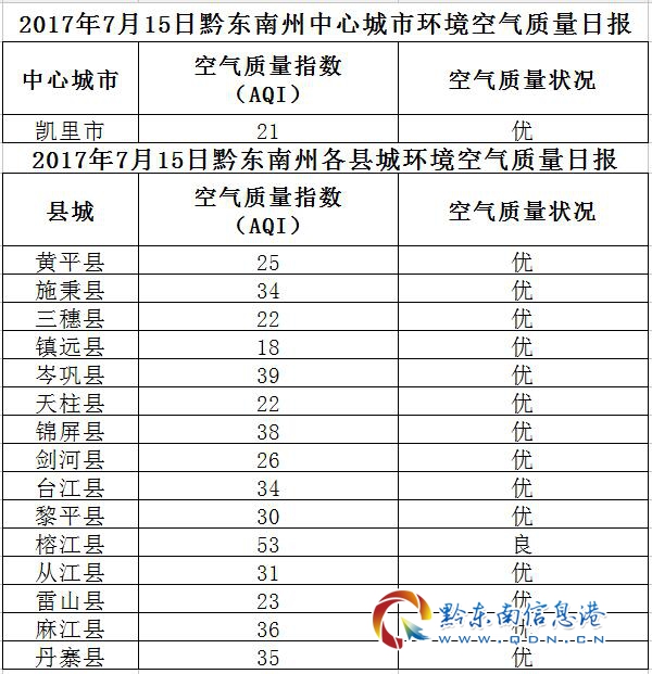2017年7月16日黔東南州各縣(市)環(huán)境空氣質(zhì)量日?qǐng)?bào)
