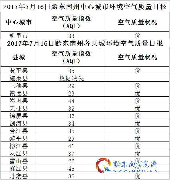 2017年7月17日黔東南州各縣(市)環(huán)境空氣質(zhì)量日?qǐng)?bào)