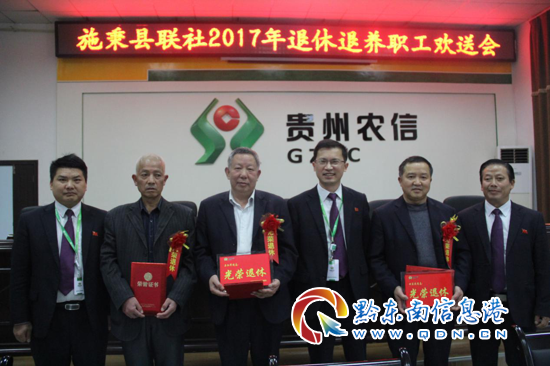 歡送會上,宣讀了2017年退休職工和親情置換職工的離退文件,并由縣聯社領導為7位出席歡送會的退休退養職工頒發榮譽證書,贈送光榮退休紀念獎牌,佩戴胸花。在輕松、愉快、熱烈的氣氛中,7位退休退養職工分別發表了自己的退休感言,和大家一起分享了他們各自的工作經歷,表達了他們對聯社,對貴州農信的留戀之情、感激之情和對同事們的難舍之意。每一位參會的同志一一向退休退養的同志表達了祝福,祝愿他們在今后的生活里,家庭幸福、身體健康、生活快樂!大家表示將繼續發揚農信社“挎包”精神,團結協作,努力拼搏,讓農信社煥發新氣象、改革發展上新臺階!