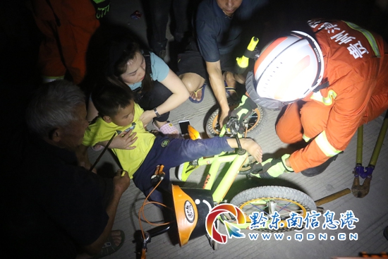 本網訊 9月9日19時57分,位于三穗縣八弓鎮金鑰匙幼兒園門口一名4歲男童在騎自行車玩耍過程中不小心腳裸被卡腳踏架內,無法取出。當地消防部門接到報警后,立即趕赴現場進行救援。