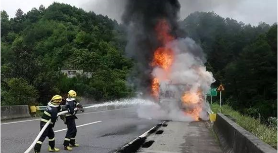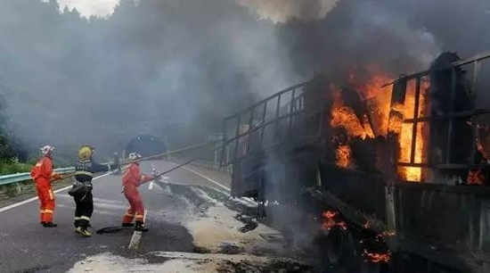 據了解,車內載有工地施工器材掛,從昆明開往長沙過程中突然發生爆胎,由于速度過快爆胎后導致輪胎起火發生事故。