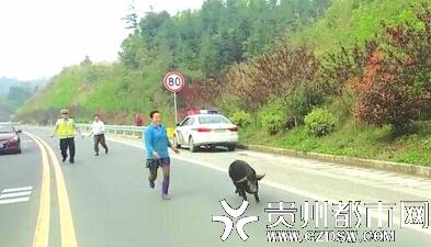 當天上午10點左右,黔東南州交警支隊高速交警錦屏大隊的民警巡邏至天黃高速公路犀牛村路段時,發現前方一頭黑毛豬在路面上亂竄,過往車輛紛紛鳴笛,豬也許是受到了驚嚇,聽到鳴笛聲后更加瘋狂的逃竄,一會橫穿公路,一會調頭奔跑,后方車輛不得不緊急制動、變道避讓,曾經一度逼停后方車輛,現場可謂是險象環生,好幾次都險些撞到黑毛豬。