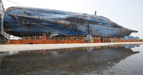 韓國世越號沉船�?吭谀酒中赂�。新華社記者姚琪琳攝