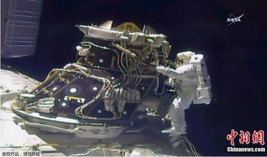 當地時間2017年5月23日,國際空間站,美國宇航員Jack Fischer和Peggy Whitson走出國際空間站,通過緊急太空行走修復國際空間站的外部備用電腦(MDM),這臺電腦是控制國際空間站重要系統的兩臺電腦之一。此次太空行走在早上7點20開始,并預計將持續2.5小時。這臺主電腦是在周六時出現故障,這就導致造價1千億美元的國際空間站不得不依靠后被系統來連接它的太陽能系統、散熱器、冷卻回路和其它設備。美國宇航局在一份聲明中稱,國際空間站中的五位成員分別來自于美國、俄羅斯和法國,他們不會遭遇任何危險。