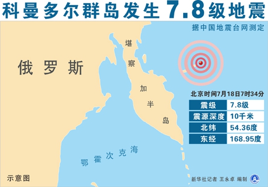 圖表:科曼多爾群島發(fā)生7.8級(jí)地震 新華社記者 王永卓 編制
