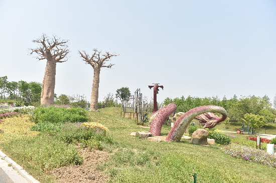 走到花海的最南頭,便是馬可·波羅的故鄉“威尼斯”。這片威尼斯花園波光粼粼、綠草茵茵,充分體現了水城威尼斯的特色。順著路往回走,便看到形似水滴的花丘,借用花朵的多彩,賦予了水滴靈動和鮮艷。