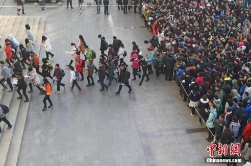 資料圖:2016年11月27日,山西太原一公務(wù)員考點(diǎn),考生排隊(duì)準(zhǔn)備進(jìn)入考場(chǎng)。武俊杰攝