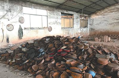 河北高邑一家小鑄造廠的半成品鍋堆放點,一片雜亂。本報記者 寇江澤攝