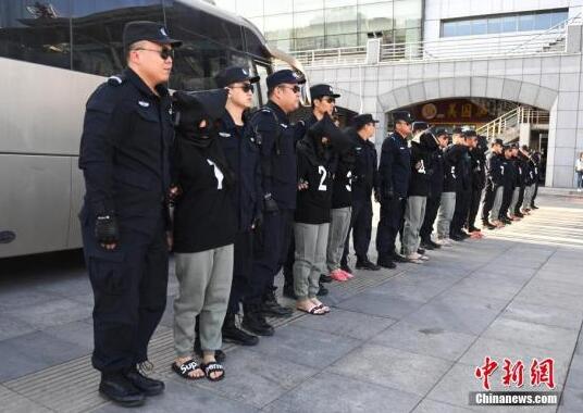 8月29日,在長春火車站,10名電信詐騙犯罪嫌疑人被長春警方從緬甸經云南押解回國。 中新社記者 張瑤 攝