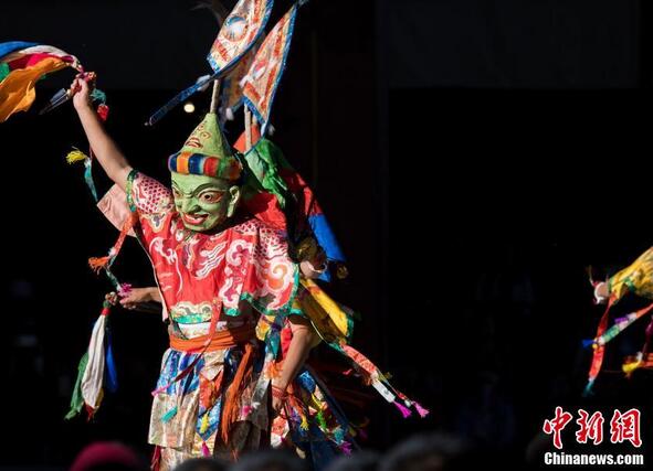 活動期間,僧人頭戴面具,身穿戲裝,手持鼓刀斧等道具,逐次表演金剛、骷髏、鹿牛、比丘、鴉鴟、六長壽等數十節神舞。舞蹈節奏緩慢,氣氛莊重神秘。跳神中間會穿插的一些詼諧幽默的啞劇小品。