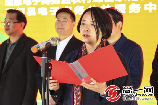 石門縣人民政府副縣長車立平向大家介紹國家電子商務進農村綜合示范縣項目啟動和電子商務公共服務中心開園情況。尚一網記者 裴維維 攝
