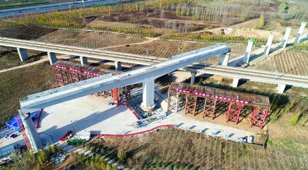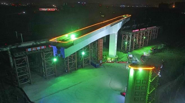 11月22日凌晨1時(shí)50分,由在漢央企中交二航局承建的鄭萬高鐵上行聯(lián)絡(luò)線萬噸T型剛構(gòu)曲線橋,在大噸位千斤頂?shù)臓恳拢鏁r(shí)針轉(zhuǎn)體50度,完美跨越正在運(yùn)營的京廣高鐵,實(shí)現(xiàn)了國內(nèi)首座萬噸級曲線T型高鐵橋成功轉(zhuǎn)體施工。