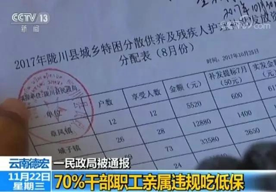 超70%干部職工親屬違規吃低保