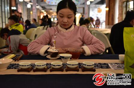 集市上的茶藝表演人員。尚一網記者 陳睿 攝