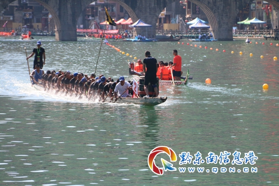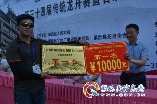 本網訊 (記者 田應龍 攝影報道) 5月28日,“多彩貴州”中國歷史文化名城·鎮遠㵲水銀江杯”第三十屆首屆傳統龍舟文化節暨首屆民間龍舟爭霸賽和高校龍舟邀請賽在舞陽河河段隆重舉行。經過精彩角逐,華北代表隊、廣州航海學院分別獲得民間爭龍舟霸賽和高校龍舟邀請賽的冠軍。