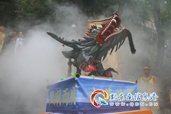 早上,在青龍洞正門處吉時一到祭龍儀式則正式開始,霎時,禮炮齊響、嗩吶聲聲。舞陽河兩岸數(shù)萬人共同祈福祖國繁榮昌盛、國泰民安、風(fēng)調(diào)雨順、富強文明。