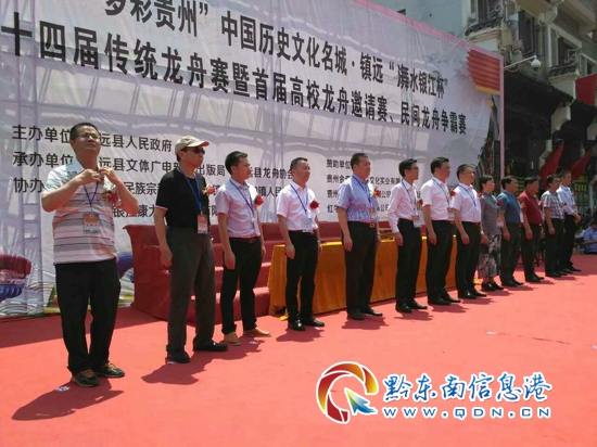 本網(wǎng)訊 (實習(xí)記者 田應(yīng)龍 攝影報道) 5月29日,鎮(zhèn)遠(yuǎn)縣舉行以“龍騰古城·和諧鎮(zhèn)遠(yuǎn)”為主題的“2017年‘多彩貴州’中國歷史文化名城·鎮(zhèn)遠(yuǎn)“氵舞水銀江杯”第三十四屆傳統(tǒng)龍舟文化節(jié)在鎮(zhèn)遠(yuǎn)古城隆重開幕。
