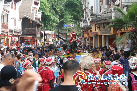 祭龍結(jié)束,舉行陸上游行。由四名壯漢抬著龍頭走在游行隊伍最前面,傳統(tǒng)的舞龍舞獅,民族舞蹈、花燈戲等民俗民間文藝表演隊緊隨其后,彩旗隊、花環(huán)隊、鼓號隊、古城太極隊等隊伍參加陸上游行。嗩吶、踩鼓舞、板凳舞等民間藝術(shù)也將盡展風(fēng)姿,別是一番風(fēng)味,人山人海,非常熱鬧,讓大家一飽眼福,與往年陸上游行有所不同的是,今年龍燈隊的編扎更加精益求精,增加民族隊、扎故事隊、儺戲、花燈歌舞、侗族情歌等突出展示了非遺遺產(chǎn)文化、傳統(tǒng)文化和鎮(zhèn)遠(yuǎn)縣悠久的歷史文化特色。