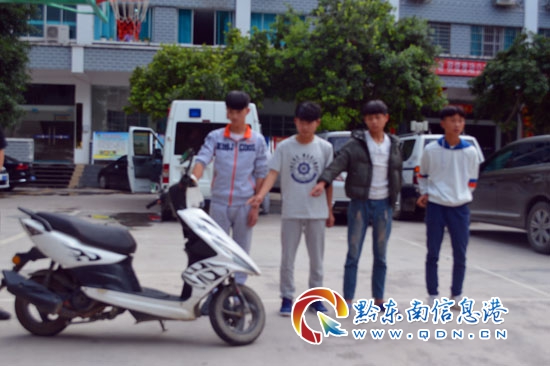 據(jù)介紹,2017年6月3日凌晨2點(diǎn)鐘左右,鎮(zhèn)遠(yuǎn)縣公安局接到群眾報(bào)警,稱在縣城文化園附近有幾個(gè)少年在偷摩托車,其中一人已被社會(huì)群防力量抓獲,另有三人逃跑。