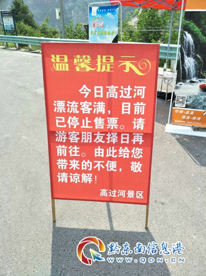 據(jù)了解,這個周末高過河漂流單日接待游客6080人,觀光接待800人,除了景區(qū)內(nèi)1500個停車位已無全部停滿游客車輛,景區(qū)外近兩公里公路變?yōu)榕R時停車位。由于游客太多,景區(qū)僅僅售票3.5小時就停止,2000名游客因停票無法漂流,滯留游客車輛對景區(qū)游客服務(wù)中心大門、公路造成堵塞,景區(qū)爆滿,接待一度處于緊張狀態(tài)。為了保證正常的運營及安全,提供流暢的服務(wù),景區(qū)決定12點停止售票,為接待降壓。