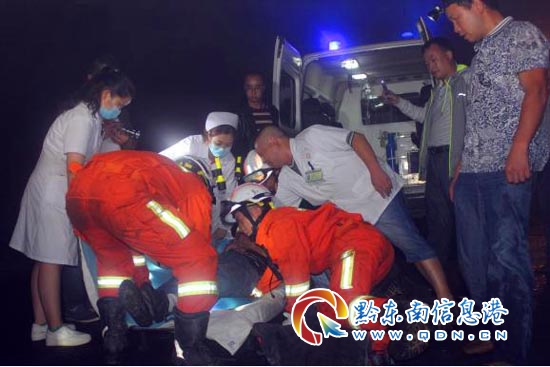 8時15分,縣119消防官兵、120急救中心醫護人員相繼趕到現場,120急救醫生在對受傷司機進行現場初步診斷和處理后,決定使用消防固定單架立即對傷員進行轉移。崎嶇的山路,滿是長刺的灌木,大家同心協力,有的用手扶開擋路的樹枝,有的抬著擔架,有的打亮照明,小心翼翼地緩步前移……經過半個小時努力,大家終于順利將傷員轉移到救護車上,向醫院疾駛而去。