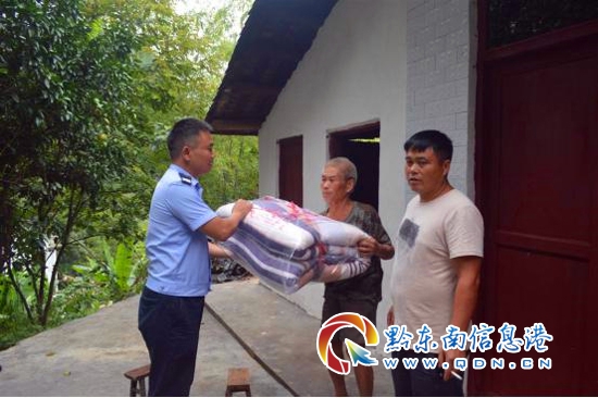 鎮遠青溪派出所民警給貧困老人龍景文送去棉被