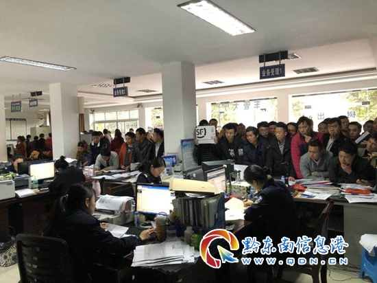 本網訊 (許景珍 記者 田應龍)近日,記者來到岑鞏縣交警隊車管所服務大廳,只見駕駛證、車輛入戶、違法處理等窗口都早已排著長長的隊伍,整個大廳里都擠滿了辦理車管業務的人。