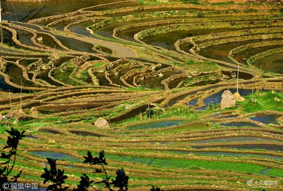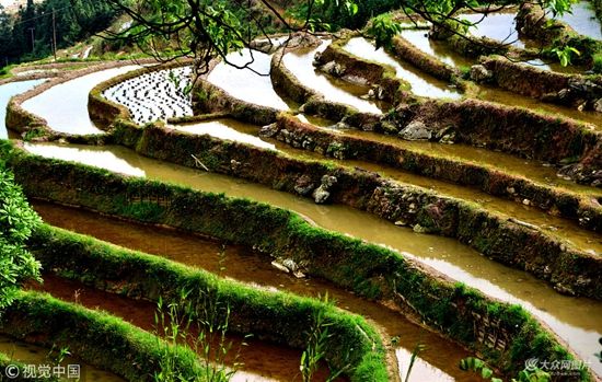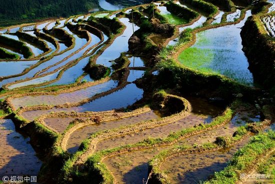 5月6日,從江縣剛邊鄉(xiāng)宰別梯田美景。立夏過后,宰別梯進入夏種繁忙時期,蓄水充盈,放眼望去,形態(tài)各異的層層梯田,流光溢彩,美輪美奐。(圖文來源:視覺中國,圖片/羅京來)