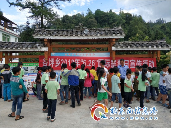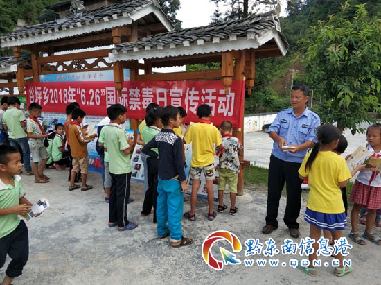 本網訊 6月26日,為切實加強轄區廣大群眾、青少年學生對毒品危害的認識,進一步筑牢遠離毒品、珍愛生命的思想防線,從江縣谷坪鄉開展了主題為“爭創全國禁毒示范城市, 努力構建和諧平安從江”的“6.26國際禁毒日”宣傳活動。
