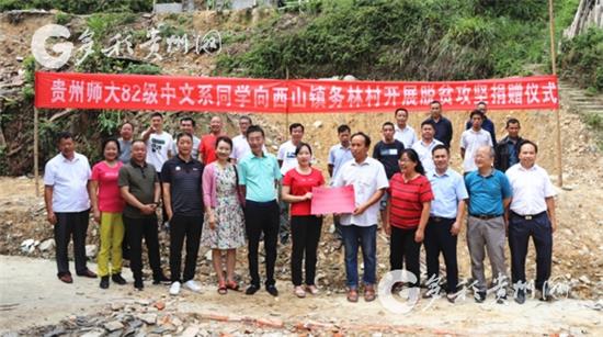 據悉,捐助活動當天,貴州師大中文系82級12位同學親自將該系88位同學籌集愛心善款送到石躍隆駐村點—西山務林村,并與村兩委座談、交流、溝通,解決了該組戲臺建設、活動場地平整資金短缺問題,同時建立務林村教育基金會,將對該村下步脫貧攻堅特別是教育發展起到積極的推動作用。(吳發校)