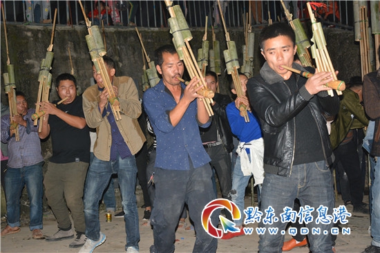 今年農歷10月28日,是六洞地區從江縣貫洞鎮五年一度的傳統民族民間“牯藏節”。隨著節日的臨近,貫洞鎮侗族村寨之間不時傳出蘆笙隊的較量聲。根據傳統習俗,比賽前蘆笙隊之間要以“走相思”的形式互吹比拼,凡是有蘆笙隊的侗寨都要出來串寨切磋蘆笙技藝。在切磋比賽時,兩寨的蘆笙對吹,雙方都要互換場地,最終看哪個寨的蘆笙吹得更響亮,那個寨蘆笙隊技藝就更高超,稍微弱一點的蘆笙隊回去之后會重新調合蘆笙音色,以備貫洞鎮“牯藏節”當天的蘆笙大賽完美亮相。