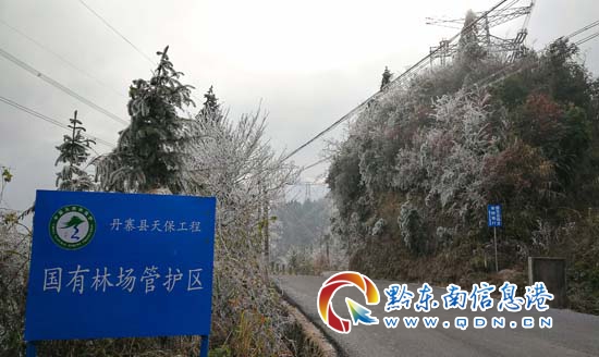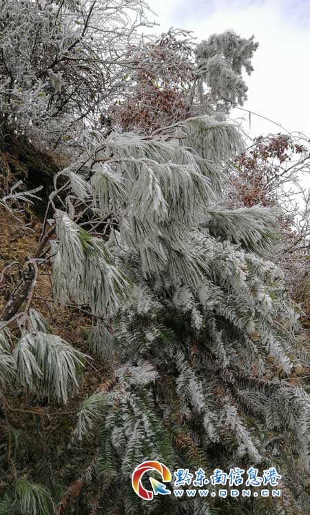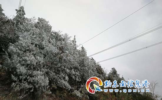 本網訊 1月8日,在連日的強冷空氣影響下,海拔1300多米的丹寨縣排調鎮貓鼻嶺森林公園出現了大面積的霧凇景觀。生態良好的貓鼻嶺森林公園猶如“銀裝素裹”,大自然贈予的冬季美景盡收眼底。(楊武魁 攝)