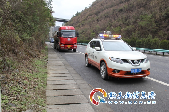 2018年1月28日,凱里高速公路管理處丹寨路政執法大隊接到通知,廈蓉高速公路榕江加油站汽油已售罄,無法給車輛提供汽油,導致大量缺油車輛滯留在榕江加油站,情況十分緊急。由于余安高速進行交通管制,送往榕江加油站油罐車被困在余安高速丹寨收費站。接到通知后,丹寨路政執法大隊大隊長劉翔考慮到廈蓉高速公路是國道主干線,車流量大這一特點,加油站缺油必定給司乘人員帶來困擾,大隊長劉翔立即與高速交警凱里一大隊二中隊聯系,決定路警聯合,護送油罐車安全行駛余安高速公路。