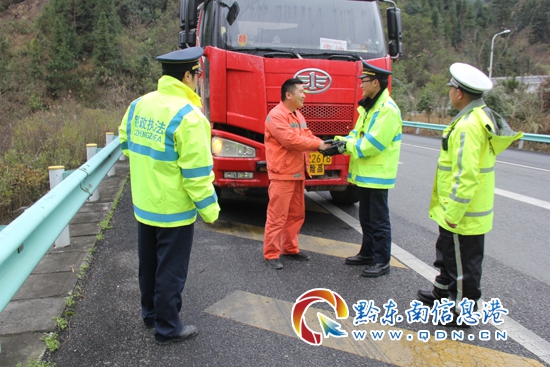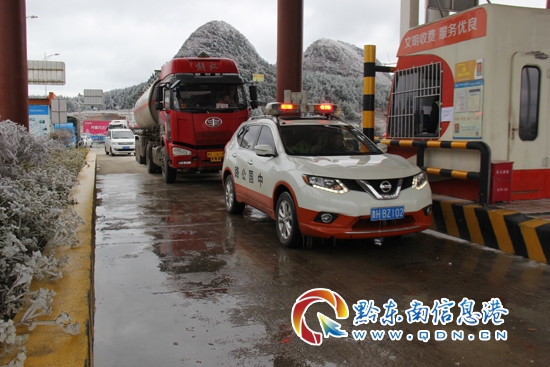 下午13時20分,在高速路政和高速交警的聯合引導下,油罐車緩慢啟程,全程30公里,雪凝天氣,舉步維艱,14時30分,丹寨路政執法大隊與高速交警一大隊二中隊終于安全將油罐車護送到三都收費站,將接力棒順利交接給榕江路政執法大隊。(陳郁萍 圖/文)