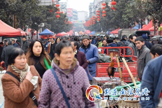 本網訊 2月11日,臨近除夕,丹寨縣龍泉鎮趕集日,當天,城區主要街道車水馬龍。