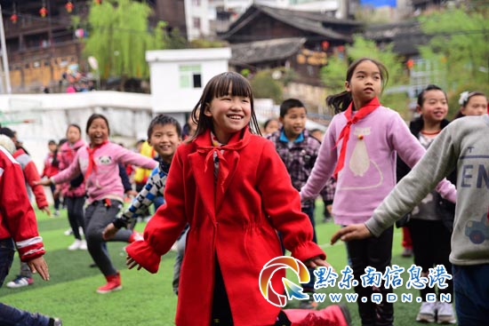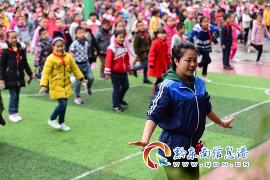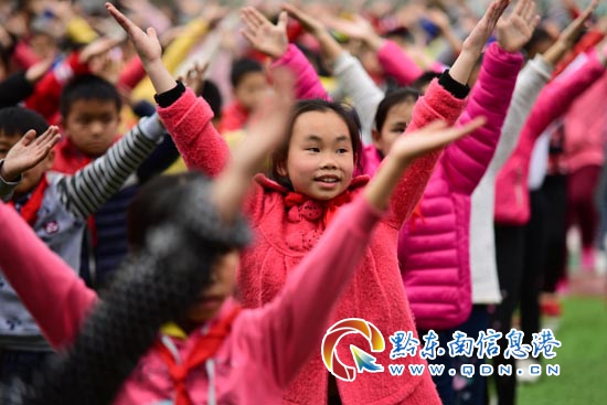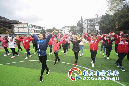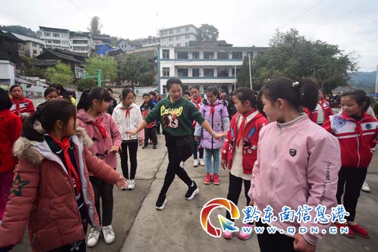 本網訊 當日,在丹寨縣排調鎮第一小學在地圖中查看,該縣文化工作者以“三區”文化人才支持計劃走進校園活動開展為契機,教孩子們跳于2006年入選國家級非物質文化遺產項目名錄的苗族錦雞舞。