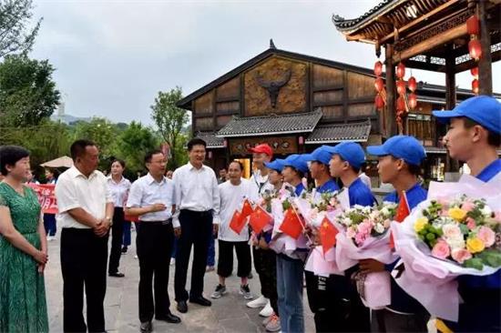 在丹寨萬(wàn)達(dá)小鎮(zhèn),護(hù)旗手們受到領(lǐng)導(dǎo)們的熱烈迎接!