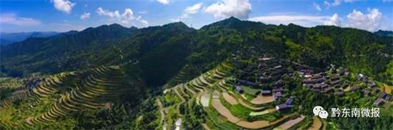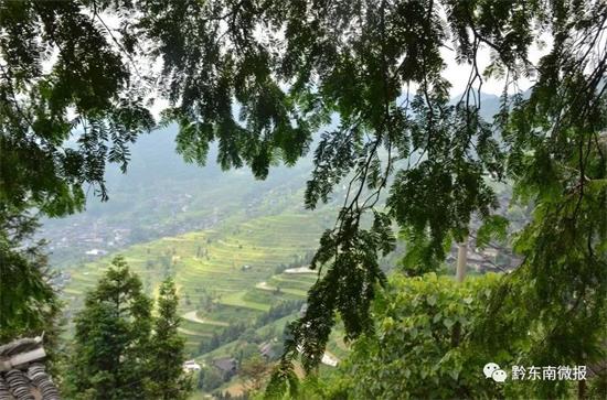 麻鳥苗寨地處雷公山腹地,一棟棟木屋順山勢而建。寨子背靠郁郁蔥蔥的山林,寨腳梯田層層疊疊,四周是幽幽深谷。